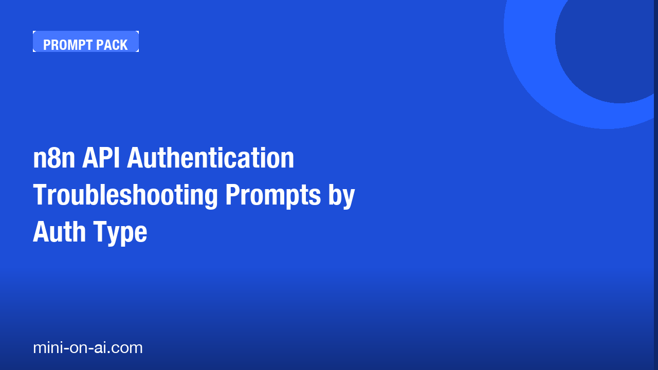 n8n developers struggling with OAuth2, API key, and webhook authentication failures get 20 precise diagnostic prompts to identify misconfiguration, token expiry, and scope issues across third-party integrations.